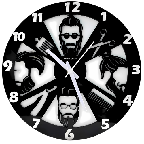 2 Men Salon Clock, Engineered wood Wall Clock, 12″ Wall Clock, Black